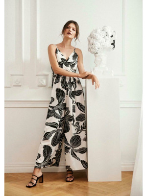 ČERNOBÍLÁ KOMBINÉZA S TROPICKÝM VZOREM